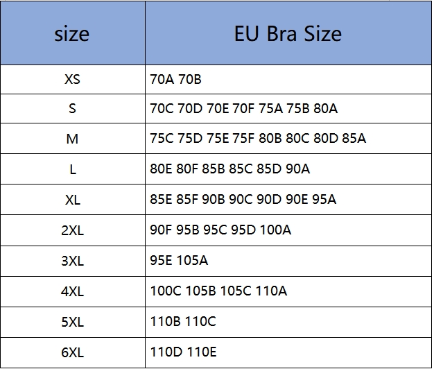 85E/F,90B/C,95D,100A μεγέθη για πάνω μέρος στήθους 95-105 cm, κάτω από το στήθος 85 cm